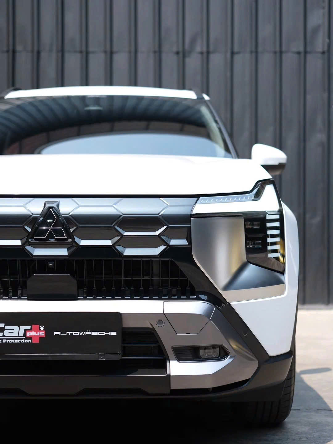 Về phần đầu xe, nhìn vào đầu xe có thể thấy được thiết kế uy lực đến từ tương lai thông qua ngôn ngữ thiết kế Dinamic Shield, lưới tản nhiệt và cụm đèn phía trước. Ngôn ngữ thiết kế Dinamic Shield được ví như chiếc khiên vững chắc, là sự kết hợp hoàn hảo giữa hiệu năng vận hành và khả năng bảo vệ với phần crom được thiết kế to hơn tạo ánh nhìn bề thế và sắc sảo hơn mang ý nghĩa bảo vệ người ngồi bên trong và chinh phục những thử thách bên ngoài. Lưới tản nhiệt thiết kế tương lai, đa tầng, họa tiết tổ ong, và được phủ 1 lớp nhựa ACrylic trong suốt lần đầu tiên xuất hiện tại dòng xe Mitsubishi mang đến vẻ hiện đại, tinh tế và sang trọng.